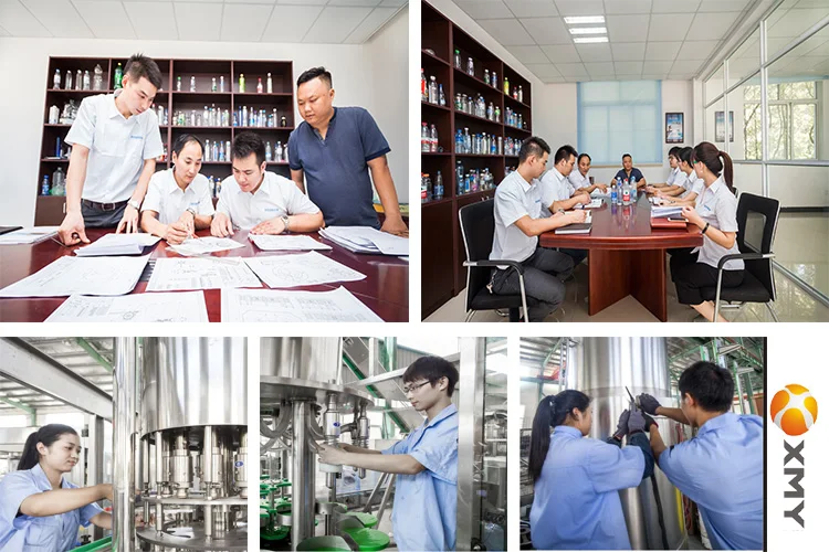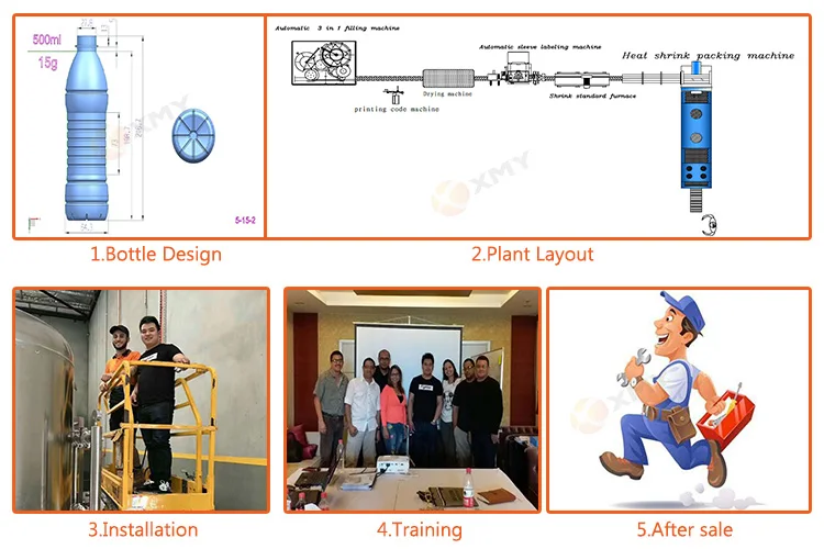 1). The washing bottle, filling, sealing are connecting with the thumb wheel card bottleneck transportation methods.